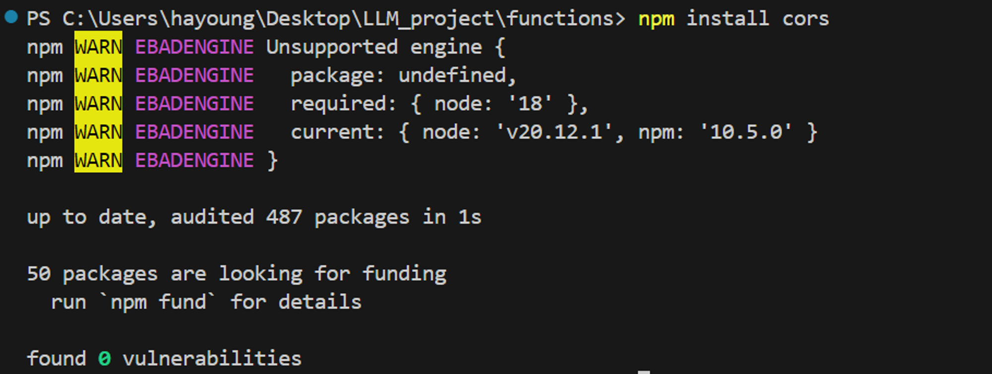 3. functions 폴더의 package.json와 package-lock.json에 설치된 패키지 확인