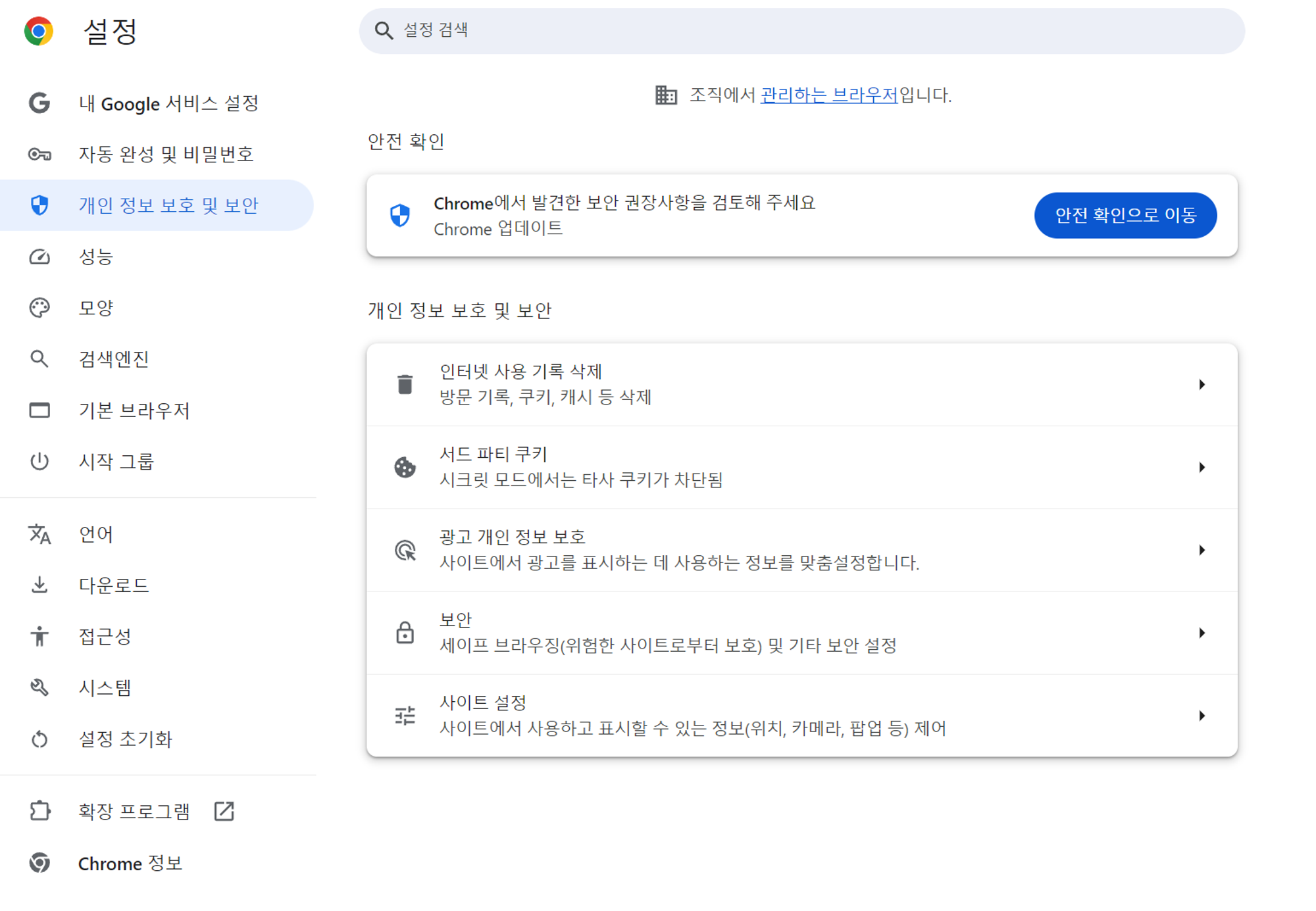 크롬 설정> 개인 정보 보호 및 보안> 인터넷 사용 기록 삭제를 눌러 쿠키를 삭제한 후 다시 테스트 진행하기