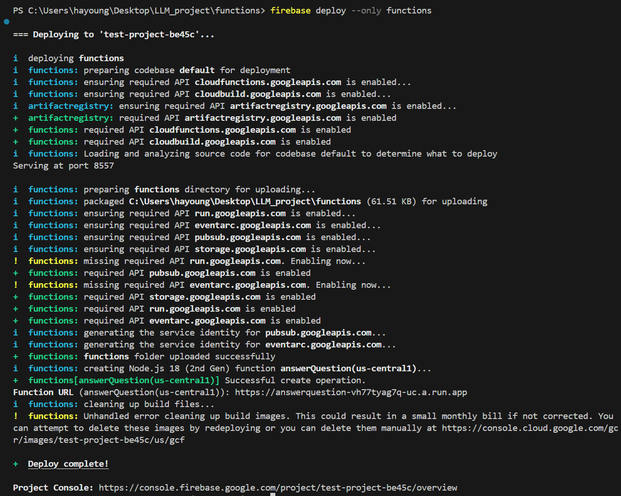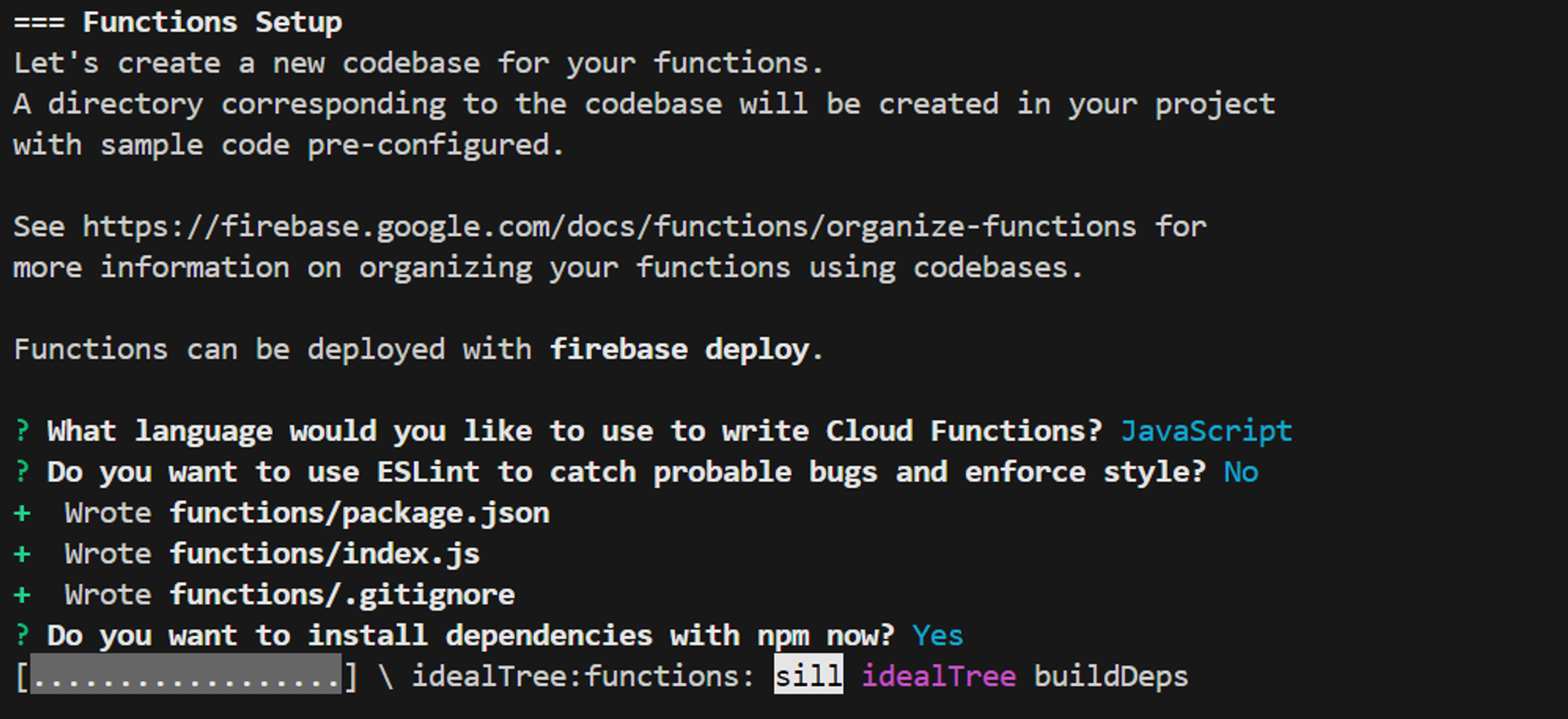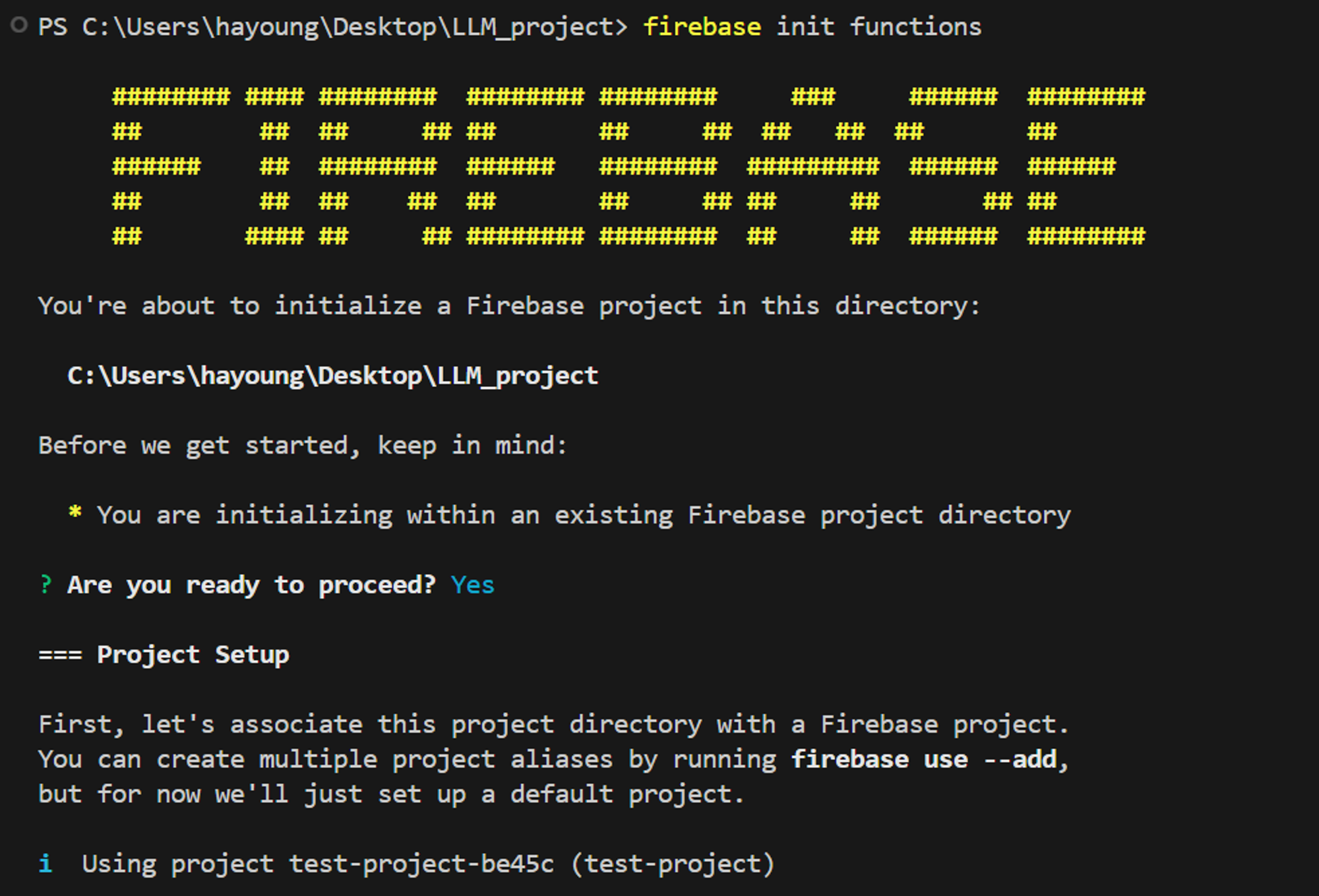 API Key 발급이 완료되었다면 이제 서버 사이드 구축을 위해 먼저 functions를 초기화한다.