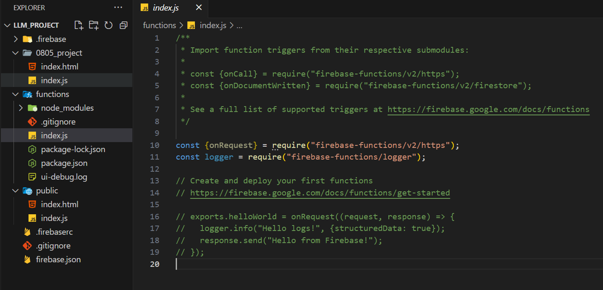 public의 index.html과 마찬가지로 functions의 index.js도 다음과 같이 수정한다.