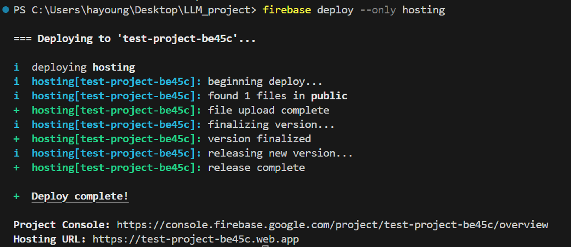 이렇게 firebase로 웹 배포까지 완료하여 가장 기본 구조를 완성하였다.