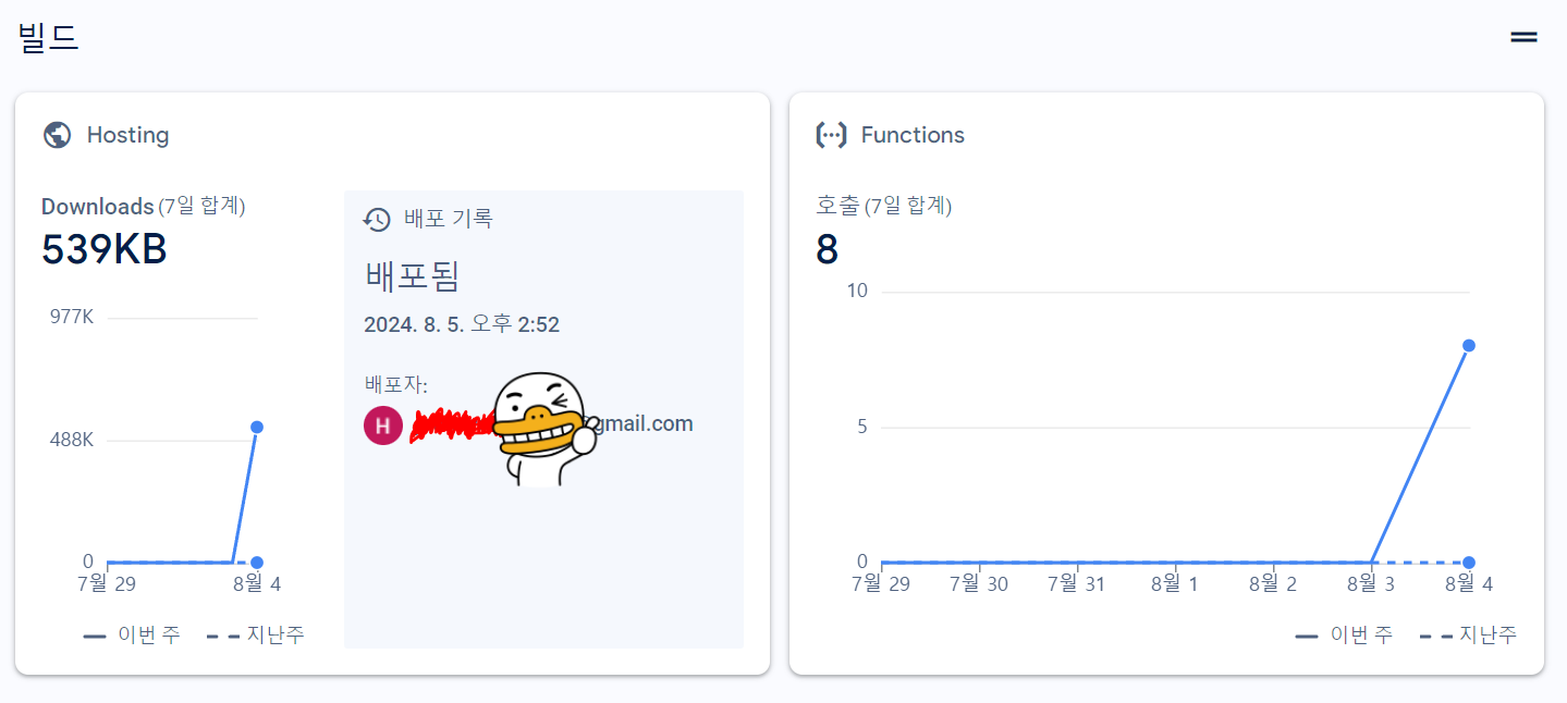firebase에서 Hosting과 Functions 상태도 확인 가능하다.