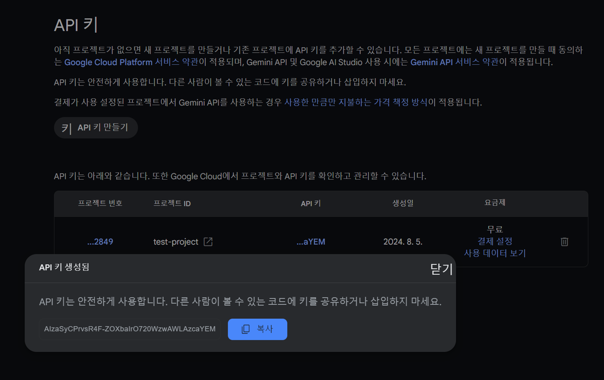 최종 목표는 Gemini API를 이용하여 사용자가 입력한 질문에 대한 답변을 출력하는 것이다.
