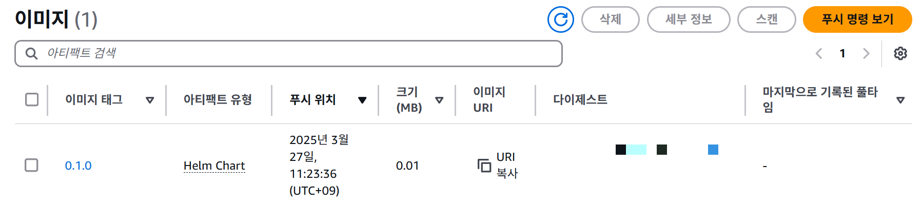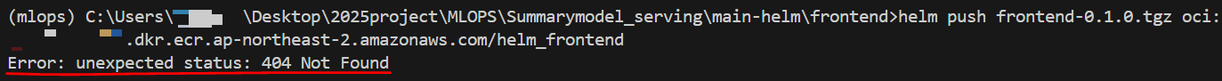 이는 .tgz 이름과 ECR 레포지토리 이름을 일치시키면 바로 해결 가능하다.