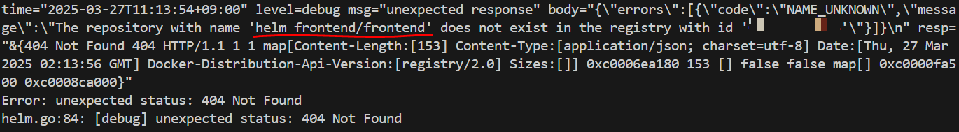 로그를 확인해보니 Helm이 OCI 이미지로 ECR에 push할 때
